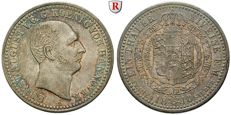 Ernst August 1837-1851. Taler 33 mm 1840 A. AKS 100; sehr schön + / vorzüglich, kl. Rdf.