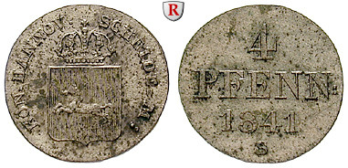 Ernst August 1837-1851. 4 Pfennig 1841 Hannover S. AKS 121; sehr schön - vorzüglich, fleckig