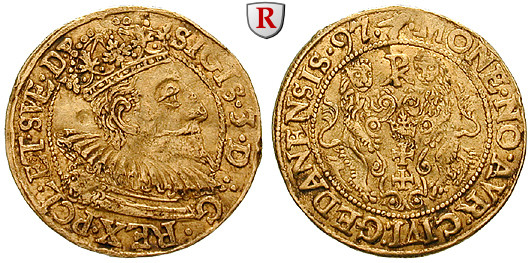 Sigismund III. 1587-1632. Dukat 22 mm 1597. Friedb. 10; GOLD, sehr schön, Feilspur am Rand