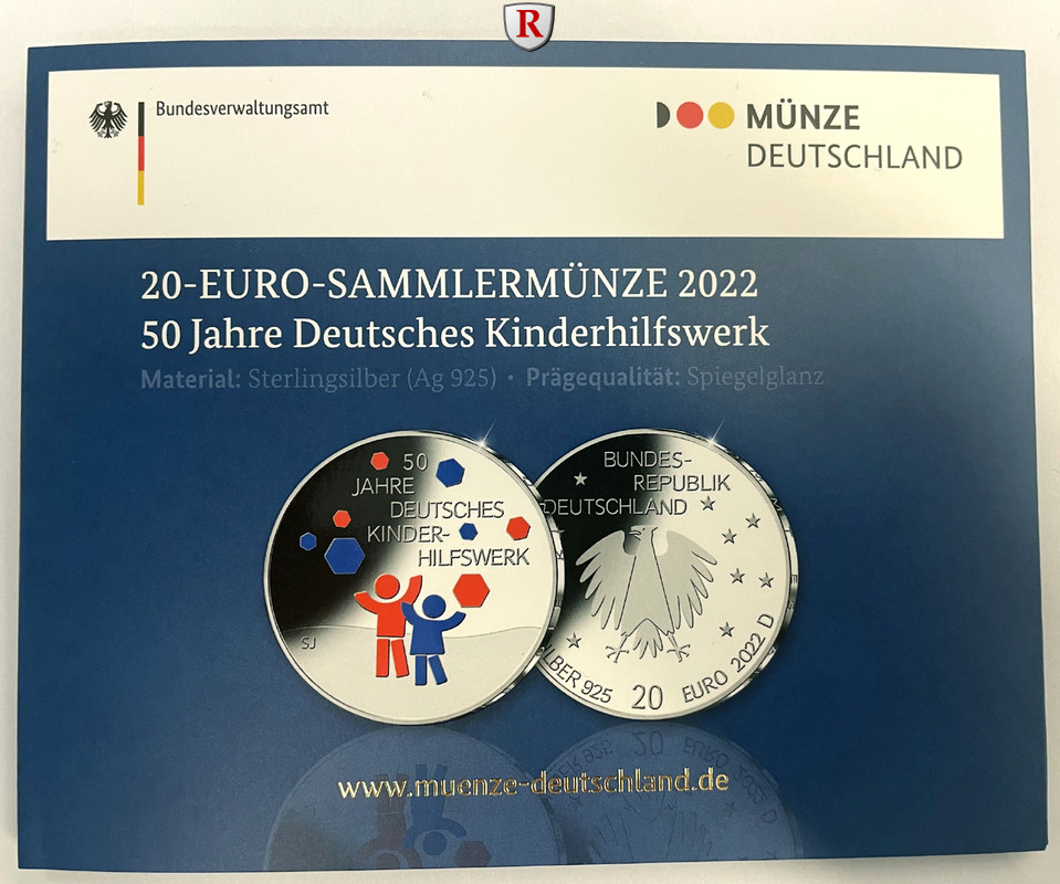 20 Euro 2022. 50 J. Deutsches Kinderhilfswerk. Polierte Platte