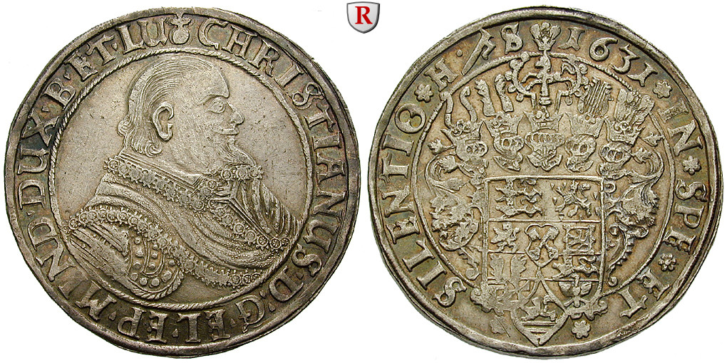 Christian von Minden 1611-1633. Reichstaler 1631 Clausthal HS. Dav. 6475; sehr schön - vorzüglich