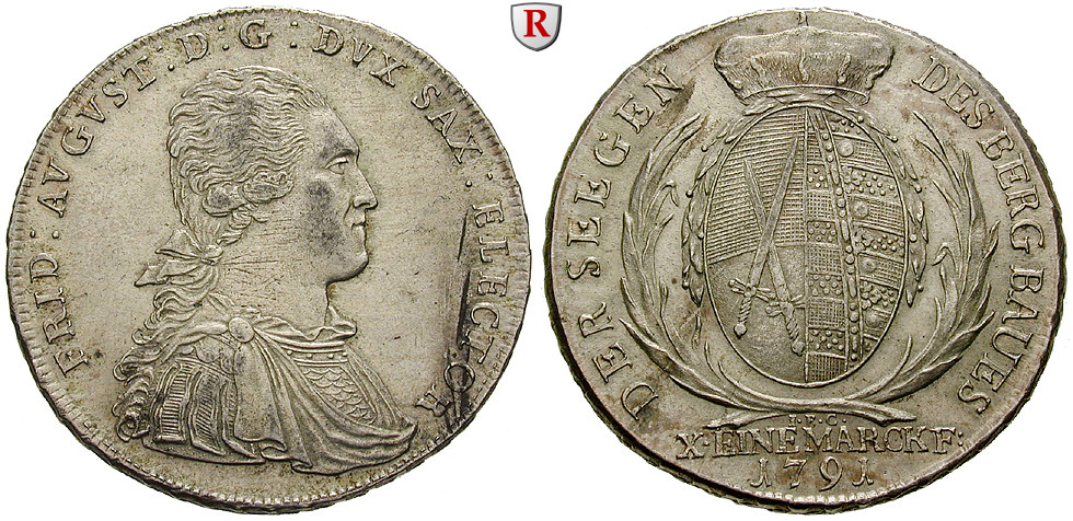 Friedrich August III. 1763-1806. Konventionstaler 1791 Dresden IEC. Ausbeute der sächsischen Gruben. Dav. 2699; sehr schön-vorzüglich / vorzüglich, Vs. l. justiert