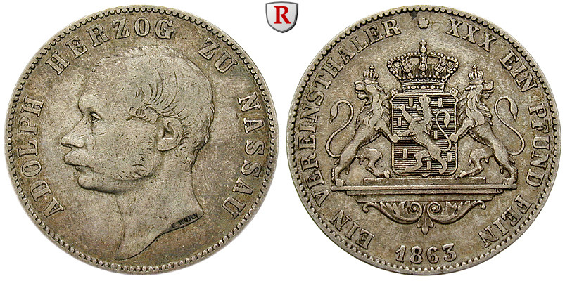 Adolph 1839-1866. Vereinstaler 1863. AKS 64; sehr schön