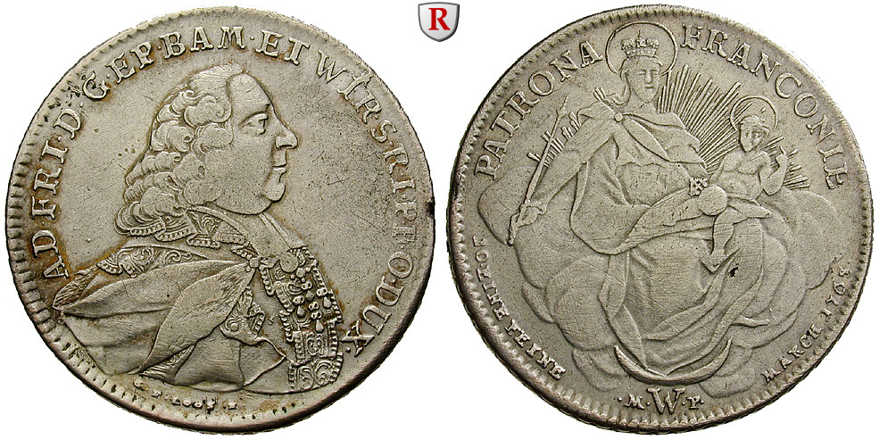 Adam Friedrich von Seinsheim 1755-1779. Konventionstaler 1765 Würzburg MP. Dav. 2899; sehr schön