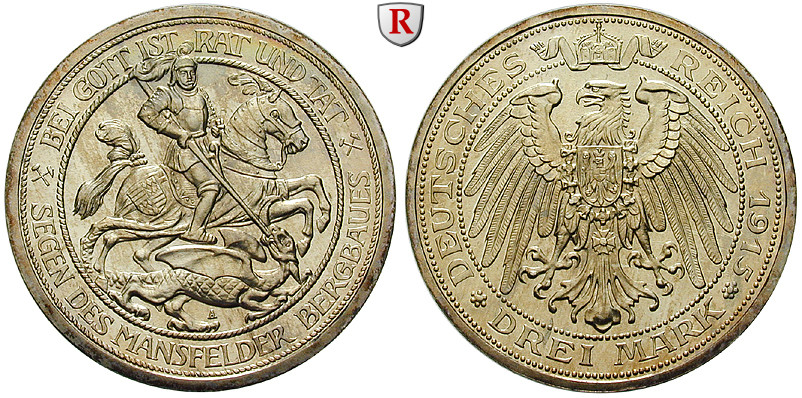 Wilhelm II. 1888-1918. 3 Mark 1915 A. Mansfeld. J. 115; Polierte Platte