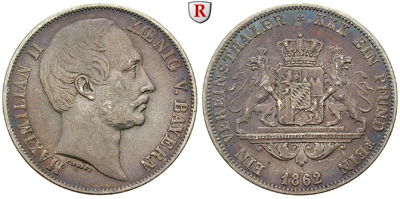 Maximilian II. 1848-1864. Vereinstaler 1862. AKS 149; sehr schön