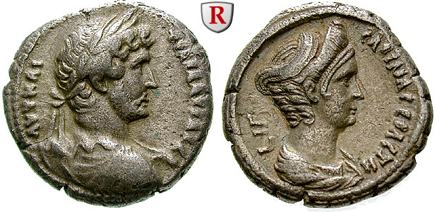 Ägypten, Alexandria. Billon-Tetradrachme 25 mm Jahr 13 = 128-129 Alexandria. Drapierte und gepanzerte Büste r. mit Lorbeerkranz / Drapierte Büste der Sabina r. mit Diadem. RPC 5729; vorzüglich / vorzüglich-stempelfrisch
