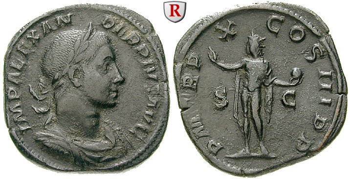 Zur Münzgeschichte: Seine Münzen wurden in Rom und Antiochia (Syrien) in fast allen Nominalen geprägt. Mit den Münzbildern nahm er wieder Bezug auf die alten Gottheiten, um den Sonnenkult Elagabals vergessen zu machen. Er verzichtete aus dem gleichen Grund auf die Ausprägung von Antoninianen (Doppeldenaren), weil diese mit ihren Strahlenkronen (Kronen des Sol) der Kaiser zu sehr an seinen Vorgänger erinnerten.