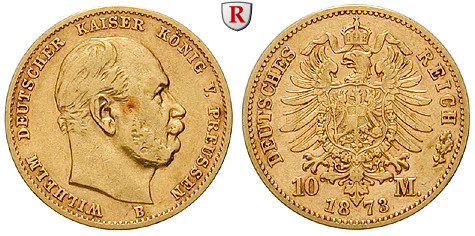 Wilhelm I. 1861-1888. 10 Mark 1873 B. J. 242; GOLD, sehr schön