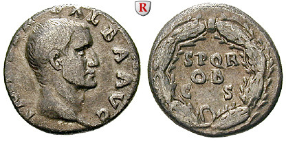 Zur Münzgeschichte: Die ersten Münzen für Galba wurden in Spanien und Gallien geschlagen. Münzstätten waren Tarragona, Narbonne, Vienne und Lyon. In Rom begann die Prägung erst nach der Anerkennung durch den Senat im Juni 68. Die Typenauswahl reflektiert den Anspruch Galbas auf eine Erneuerung des Staatswesens, so SALVS GENERIS HVMANI (Das Heil der Menschheit) oder ROMA RENASCENS (Rom wiedergeboren). Die schönsten Münzen Galbas sind seine Sesterzen. Hervorragende Stempelschneider haben das beeindruckende Altersportrait eines Mannes geschaffen, dessen ernste und strenge Gesichtszüge seinen Charakter widerspiegeln.