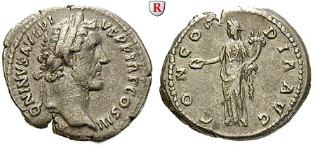 Zur Münzgeschichte: Die meisten seiner Prägungen stammen aus Rom. Ob auch in den Provinzen Reichsmünzen geprägt worden sind, ist unsicher. Im Ganzen fallen die Schrötlinge der Denare und Sesterzen nicht mehr so gleichmäßig rund wie unter Hadrianus aus, sondern eher oval oder unregelmäßig. Manchmal sind die Schrötlinge der Denare sehr knapp.