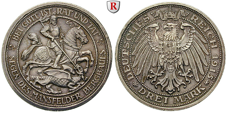 Wilhelm II. 1888-1918. 3 Mark 1915 A. Mansfeld. J. 115; fast vorzüglich, l. geputzt; Rdf.