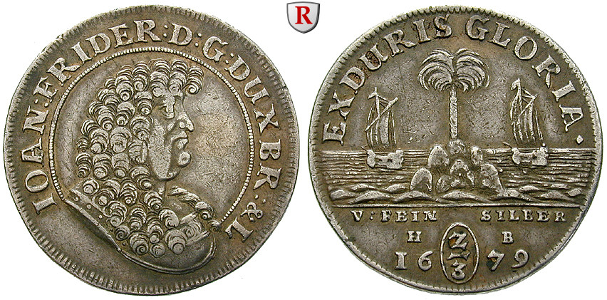Johann Friedrich 1665-1679. 2/3 Taler 1679 Hannover. Palmbaumgulden. Dav. 377; sehr schön +