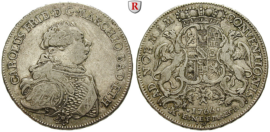 Karl Friedrich 1746-1806. Konventionstaler 1766 Durlach. Dav. 1934; sehr schön