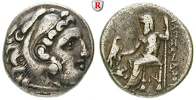 Alexander III. der Grosse 336-323 v.Chr. Drachme 310-301 v.Chr. Lampsakos. Kopf des Herakles r. mit Löwenfell / Thronender Zeus l., hält Adler und Zepter, Beizeichen Pegasusprotome. Price 1382; sehr schön