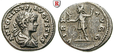 Zur Münzgeschichte: 214 führte Caracalla zur Finanzierung seiner Kriege eine neue Silbermünze ein, den von der Wissenschaft seit dem Mittelalter so bezeichneten Antoninian. Er war zwei Denare wert, wog aber nur das anderthalbfache. Auf ihm trägt der Kaiser eine Strahlenkrone, eine Besonderheit, die in Rom häufig für Münzen mit doppeltem Wert gegenüber der Grundwährung verwendet wurde.