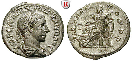 Zur Münzgeschichte: Seine Münzen wurden in Rom und Antiochia (Syrien) in fast allen Nominalen geprägt. Mit den Münzbildern nahm er wieder Bezug auf die alten Gottheiten, um den Sonnenkult Elagabals vergessen zu machen. Er verzichtete aus dem gleichen Grund auf die Ausprägung von Antoninianen (Doppeldenaren), weil diese mit ihren Strahlenkronen (Kronen des Sol) der Kaiser zu sehr an seinen Vorgänger erinnerten.