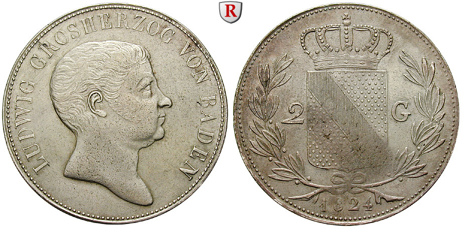Ludwig 1818-1830. Doppelgulden 1824. AKS 54; good very fine