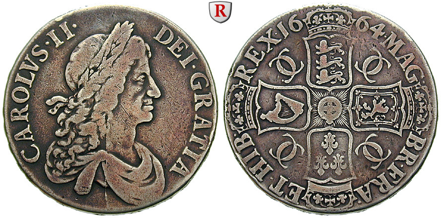 Charles II. 1660-1685. Crown 1664. Second bust. Small flan. XVI. S. 3355; sehr schön