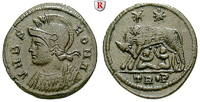 Alleinherrscher des römischen Reiches. Förderer des Christentums, geehrt als der Große. Als sein Vater Constantius Chlorus, Caesar in der 1.Tetrarchie unter Diocletianus und Maximianus Herculius, Theodora, die Stieftochter des Maximianus Herculius, heiratete, begab sich der unehelich geborene CONSTANTINUS nach einem Aufenthalt in Gallien an den Hof des Diocletianus in Nicomedia (Kleinasien in der heutigen Türkei). Nach der Abdankung des Diocletianus im Jahre 305 kehrte Constantinus zu seinem Vater nach Gallien und Britannien zurück und wurde nach dessen Tod (306) von den Truppen dort zum neuen Augustus ausgerufen. Er fand keine Zustimmung des Augustus Galerius, der Severus II. zu seinem Mitaugustus machte und Constantinus nur als Caesar akzeptierte. Erst im Jahre 310 war Constantinus allgemein anerkannter Mitkaiser neben Galerius Maximianus, Maximinus Daia und Licinius I. (4 Augusti) und dem umstrittenen Augustus Maxentius in Rom.