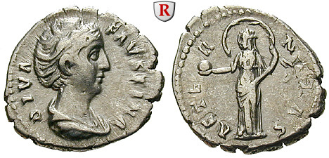 Roman Imperial Coins, Faustina Senior, wife of Antoninus Pius, Denarius after 141, vf