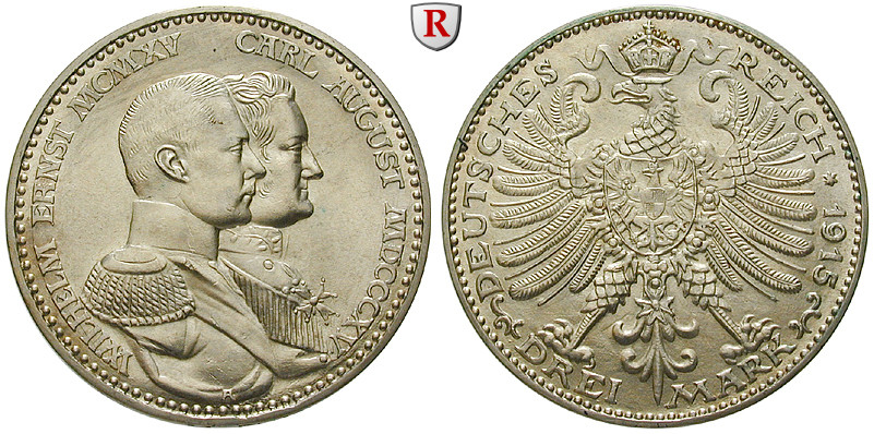Wilhelm Ernst 1901-1918. 3 Mark 1915 A. Jahrhundertfeier. J. 163; vorzüglich +