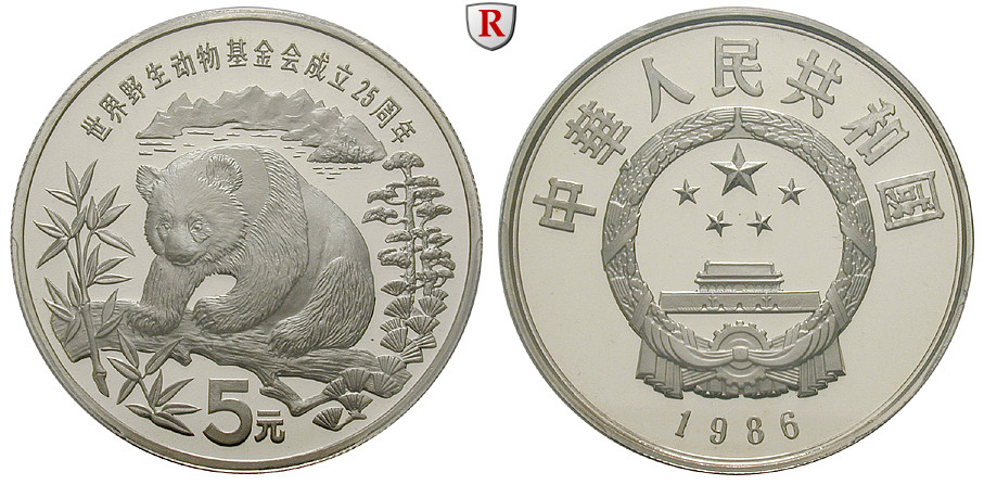 Volksrepublik seit 1949. 5 Yuan 1986. Panda. KM 106; Polierte Platte, PCGS PR69DCAM
