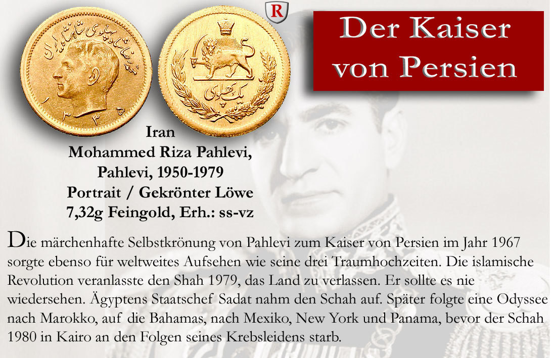 Die märchenhafte Selbstkrönung von Pahlevi zum Kaiser von Persien im Jahr 1967 sorgte ebenso für weltweites Aufsehen wie seine drei Traumhochzeiten. Die islamische Revolution veranlasste den Shah 1979, das Land zu verlassen. Er sollte es nie wiedersehen. Ägyptens Staatschef Sadat nahm den Schah auf. Später folgte eine Odyssee nach Marokko, auf die Bahamas, nach Mexiko, New York und Panama, bevor der Schah 1980 in Kairo an den Folgen seines Krebsleidens starb.