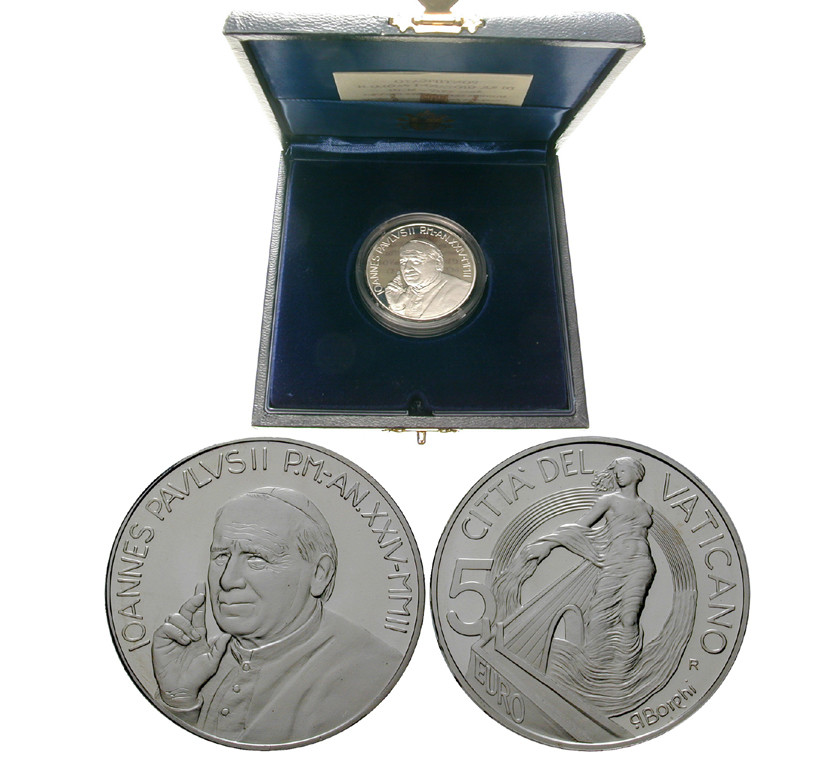Johannes Paul II. 1978-2005. 5 Euro 32 mm 2002. Europa - ein Projekt des Friedens und der Brüderlichkeit. Polierte Platte