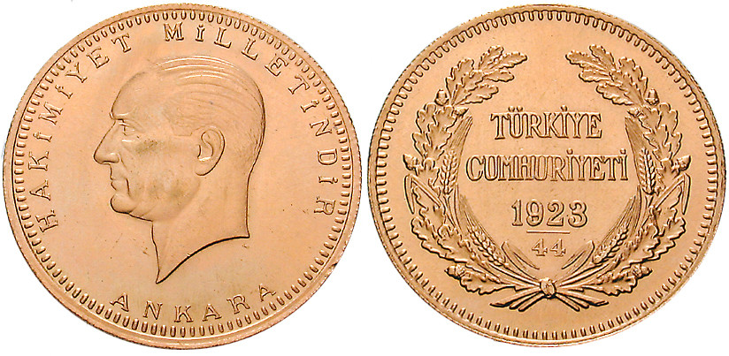 500 Piaster 32,17 g fein, 1967. Atatürk. Schl. 830; GOLD, vorzüglich-stempelfrisch