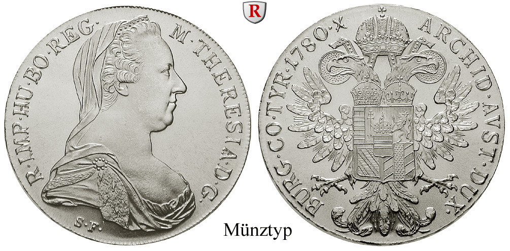Maria Theresia 1740-1780. Taler 40 mm 23.38 g fine, 1780. Restrike (COINTYPE PICTURE). mint state, current price
