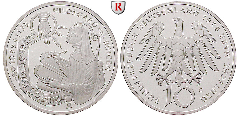 10 DM 1998. Hildegard v. Bingen, Einzelmünze, Mzz. nach unserer Wahl. J. 468; Polierte Platte