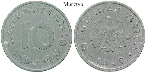 Zink-10 Reichspfennig 1947 A. J. 375; vorzüglich-stempelfrisch