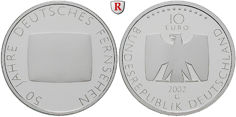 Bundesrepublik Deutschland, 10 Euro 2002, 50 Jahre Fernsehen., G, bfr., J. 496