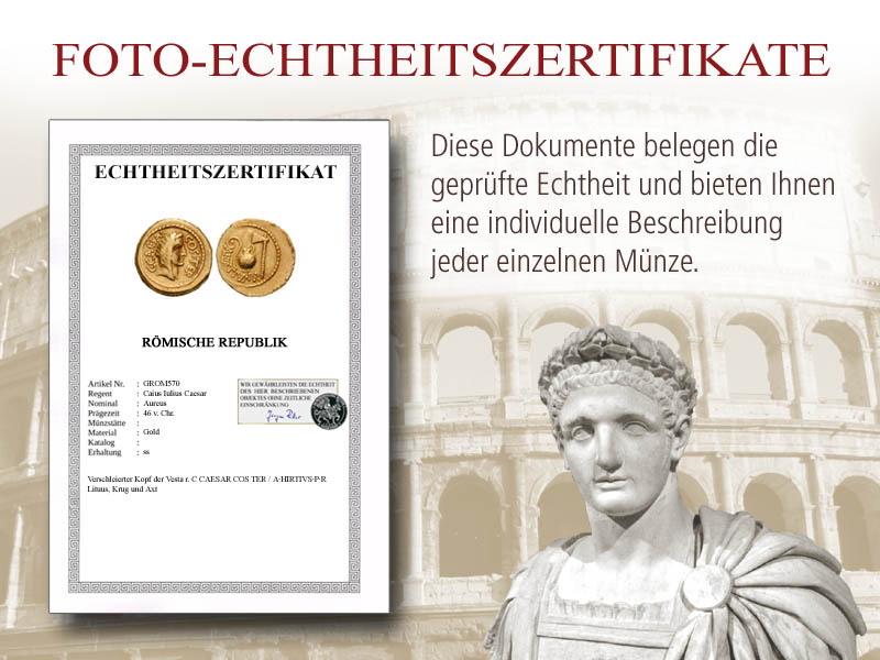 Ihre Sammlung römischer Münzen begleitet Sie von der frühen Kaiserzeit durch die Herrscherhäuser der römischen Caesaren und hält die Namen der berühmtesten Persönlichkeiten dieser Epoche bereit.