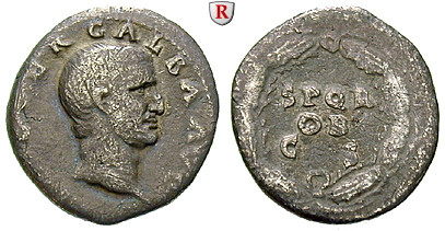 Galba 68-69. Denarius 18 mm Juli 68 - Jan. 69 Rome. Head right IMP SER GALBA AVG / SPQR OB CS in three lines within oak wreath. RIC 167; fine to very fine