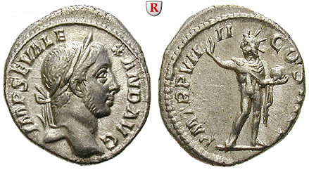 Severus Alexander 222-235. Denarius 20 mm 230 Rome. Laureate bust right IMP SEV ALEXAND AVG / P M TR P VIIII COS III PP Sol standing left, raising right arm and holding whip. RIC 101; extremely fine, rev. slightly decentered