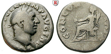 Vitellius 69. Denarius 18 mm Rome. Laureate head right A VITELLIVS GERM IMP AVG TR P / CONCORDIA PR Concordia seated left, holding patera and cornucopiae. RIC 90; nearly very fine