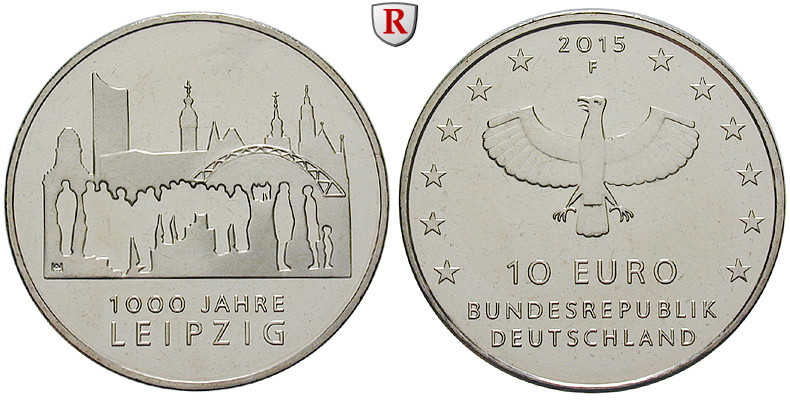 Copper-Nickel-10 Euro 2015 F. 1000th jubilee of Leipzig. Uncirculated