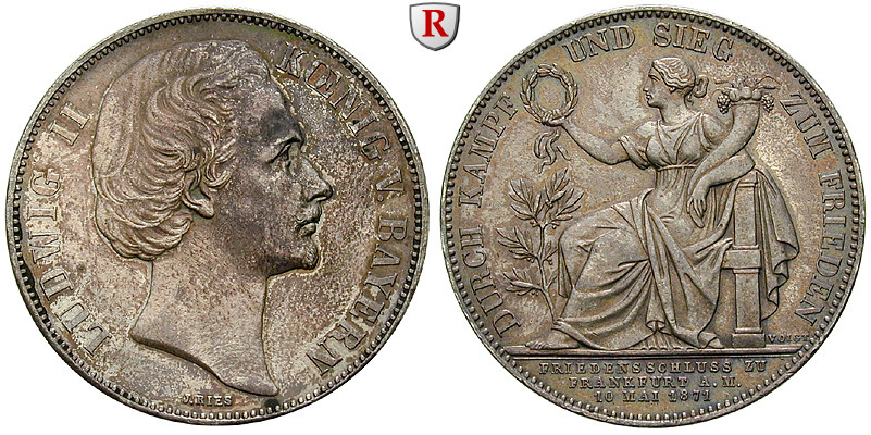 Ludwig II. 1864-1886. Siegestaler 1871. AKS 188; very fine to extremely fine / extremely fine, obv. polished; scratches