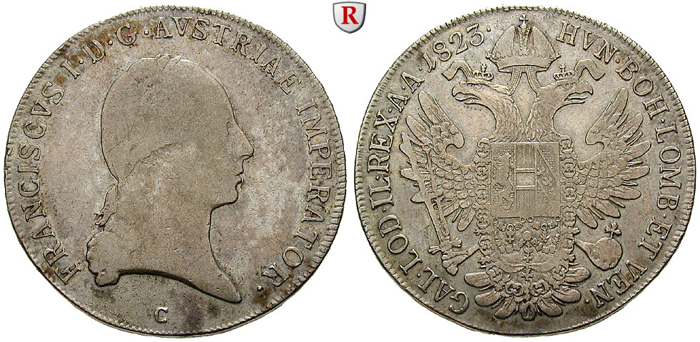 Franz II (I) 1792-1835. Konventionstaler 1823 C Prague. Herinek 322; very fine
