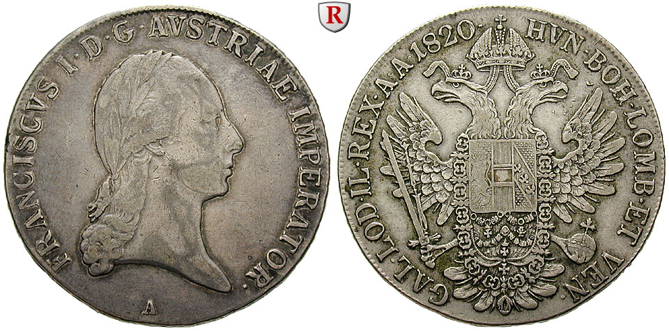 Franz II (I) 1792-1835. Konventionstaler 1820 A. Herinek 305; good very fine